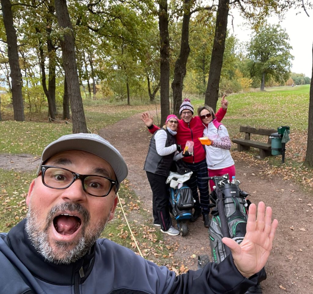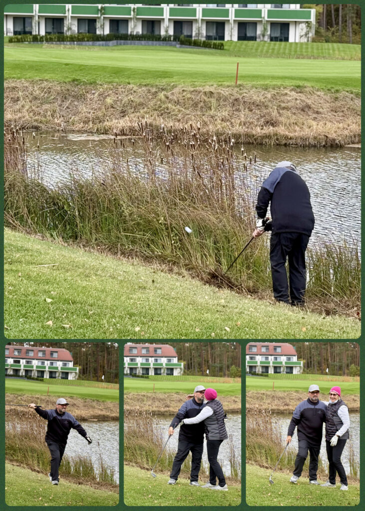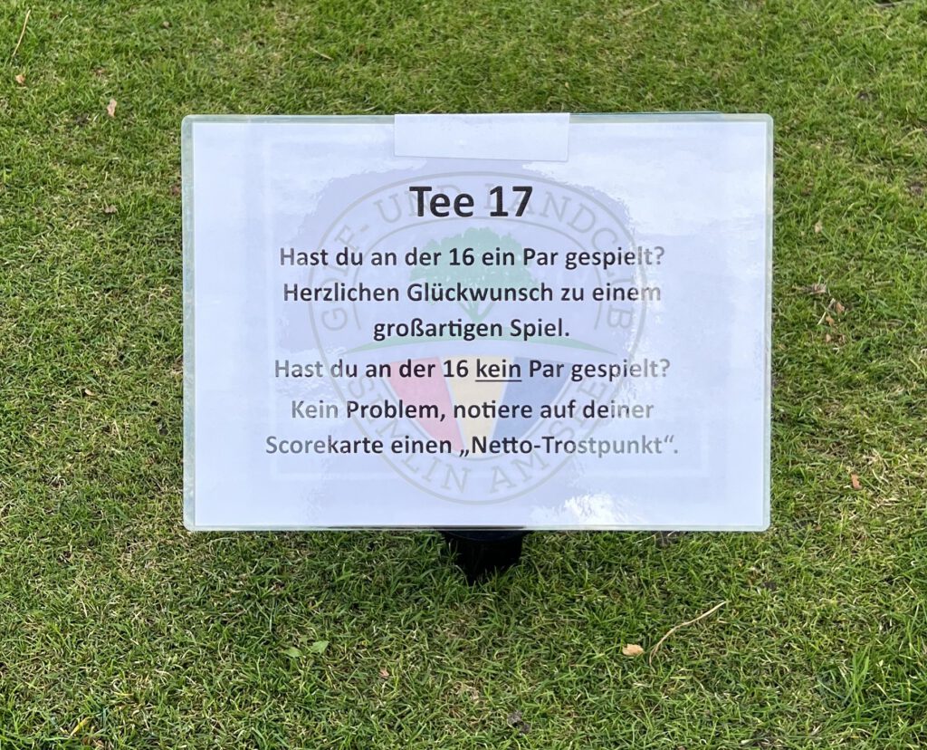 Ach ja, da war noch was. Wenn du an ein Par 3 kommst, vom Flight vor dir sind ausschließlich Trollys auf der Spielbahn zu sehen und schließlich erfolgt irgendwann der zweite Schlag kurz hinter dem Damenabschlag erfolgt, dann