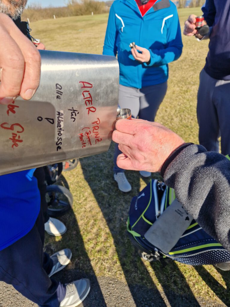 Der sportliche Start am Samstag erfolgte in Form eines entspannten 4er Scrambles. Alle Teams waren äußerst motiviert für das erste Turnier des Jahres und stärkten sich vor der Runde aus dem traditionellen, übergroßen Flachmann (gefüllt mit köstlicher Marille), den Birte und Gersi gesponsert hatten.