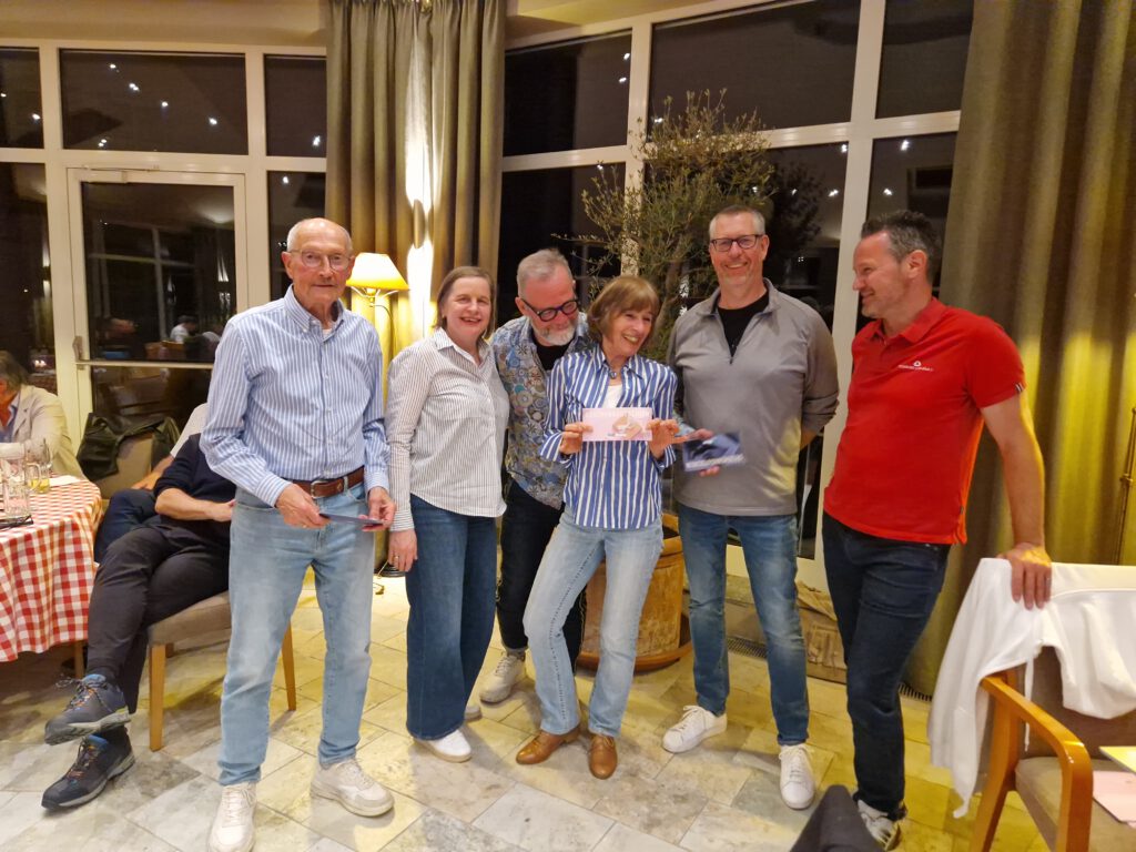 Netto A gewann das selbsternannte „Lazarett-Team“ mit Birte (Knie), Helge (Rücken), Gersi (Schulter) und Jens (der hatte nix) mit dann doch erstaunlichen 8 unter Par und 58 Netto-Punkten.
