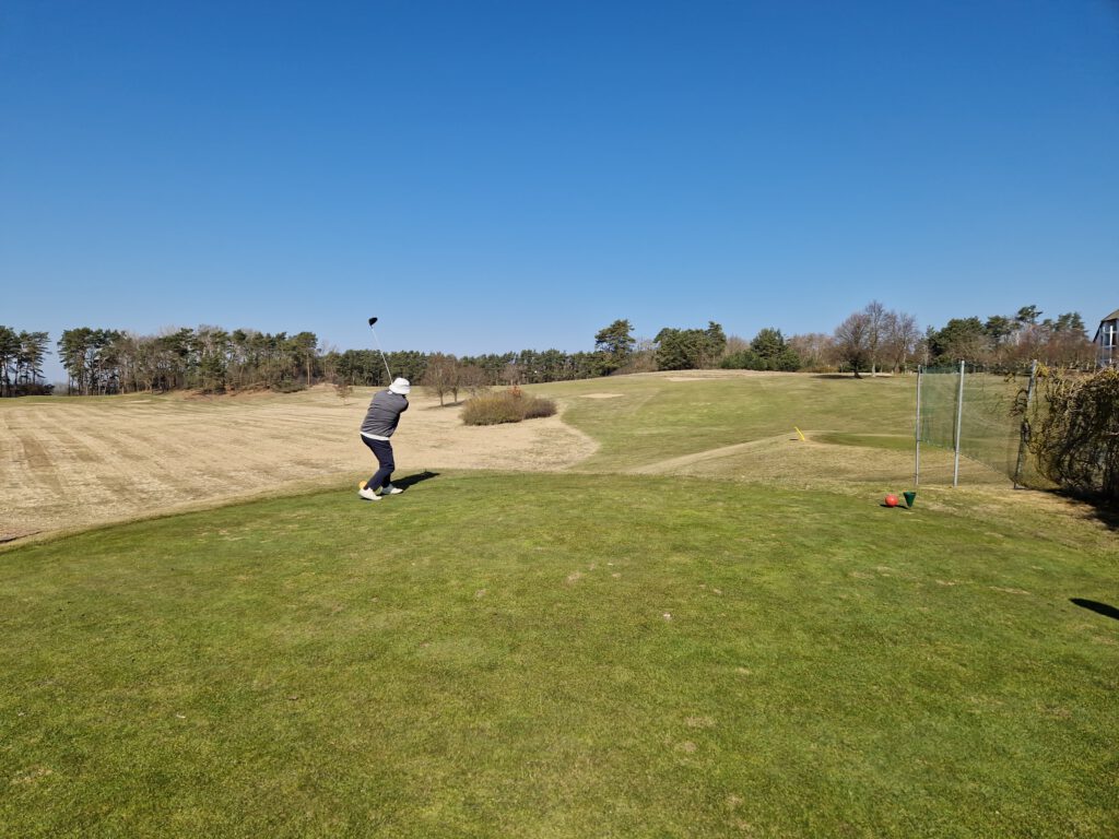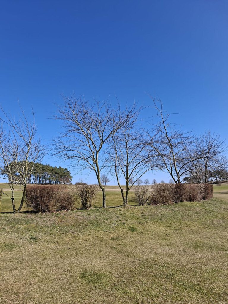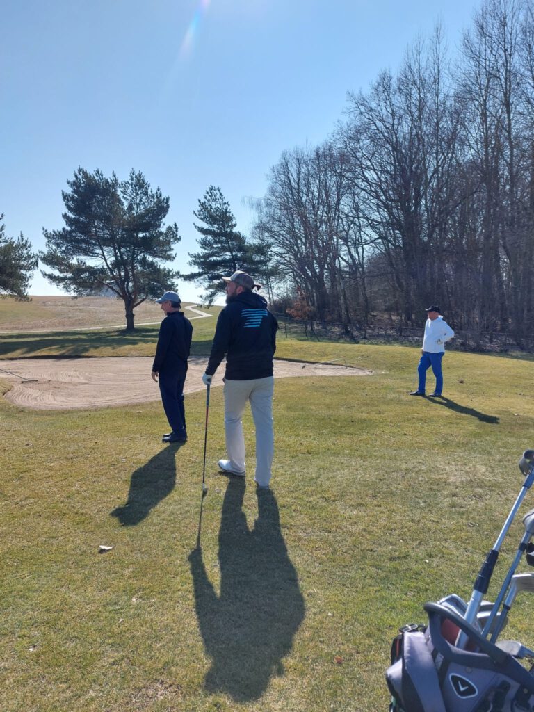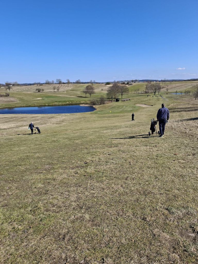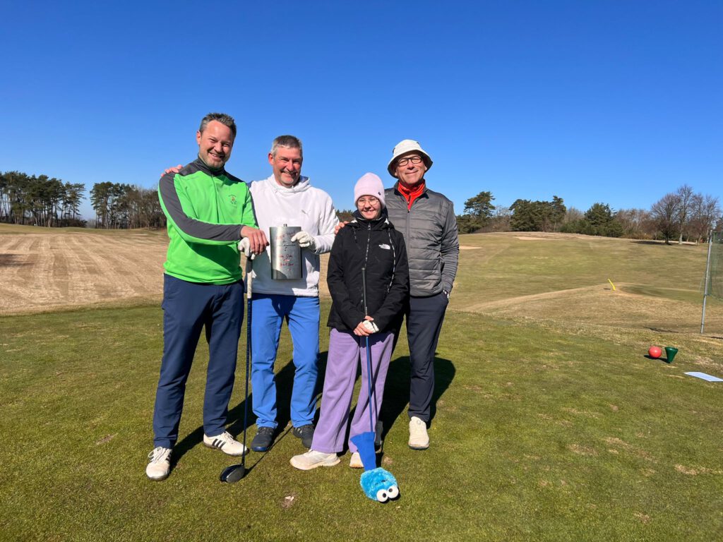 Strahlender Sonnenschein begleitete die Flights, auch wenn die Temperaturen noch recht frisch waren. Der Golfpark befand sich noch im Winterspielbetrieb, was bedeutete, dass auf Wintergrüns gespielt werden musste. Es war leider nur der gelbe Kurs geöffnet, zudem erfolgten die Abschläge für Damen (Rot) und Herren (Gelb) einheitlich von den gelben Markierungen. Da die Runden somit nicht vorgabewirksam waren, stand der reine Spielspaß ohne Handicap-Druck im Mittelpunkt.