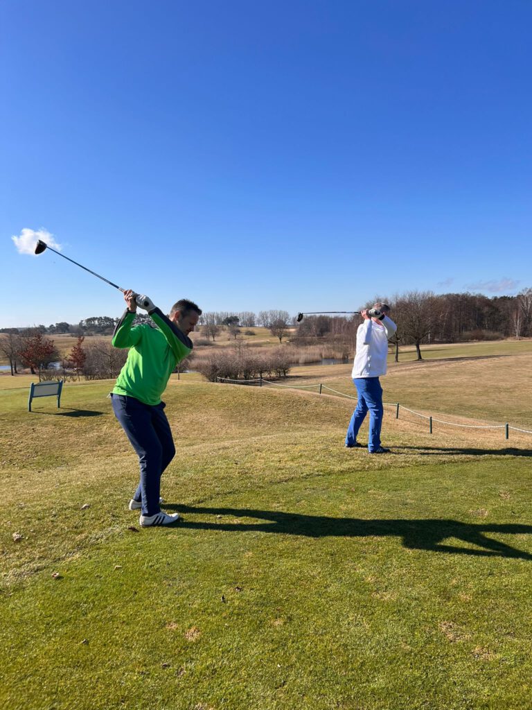 Eigentlich sah die Planung dann für den Sonntag ein klassisches Einzel vor. Doch die Albatrosse sind echte Teamplayer: Eine spontane Umfrage ergab ein eindeutiges Votum. Die Gruppe entschied sich kurzerhand um und spielte auch am Sonntag bei herrlichem Wetter ein weiteres 4er Scramble – die perfekte Wahl für die allgemeine Verfassung nach den Abendstunden. An dieser Stelle mal wieder (viel zu selten gesagt) ein herzliches Dankeschön an die beiden Organisatoren Dirk und Sven, auch für deren Spontanität und Flexibilität.